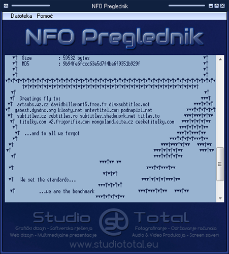 Nfo datoteka u sebi sadrži tekstualne podatke o određenom fajlu. Takve datoteke